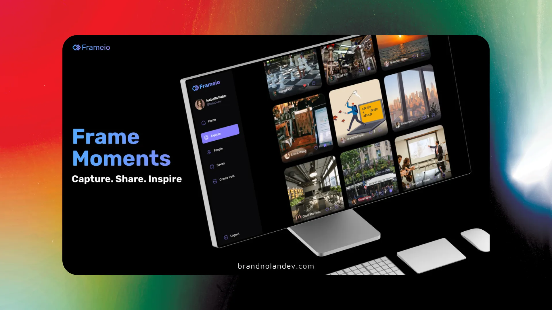Frameio is a vibrant social network platform for dynamic posting of images, posts, and community interaction with likes, saves, and content search capabilities.